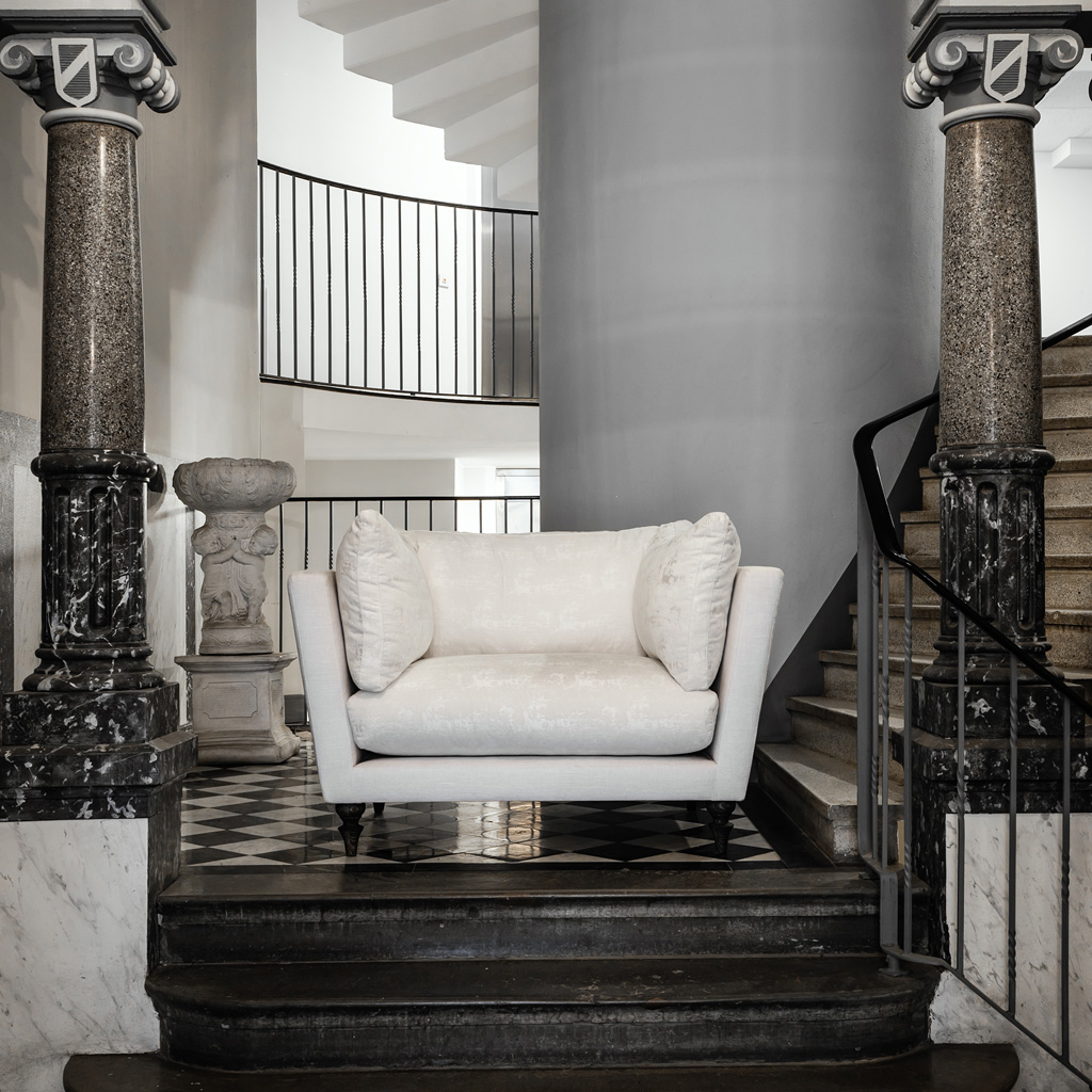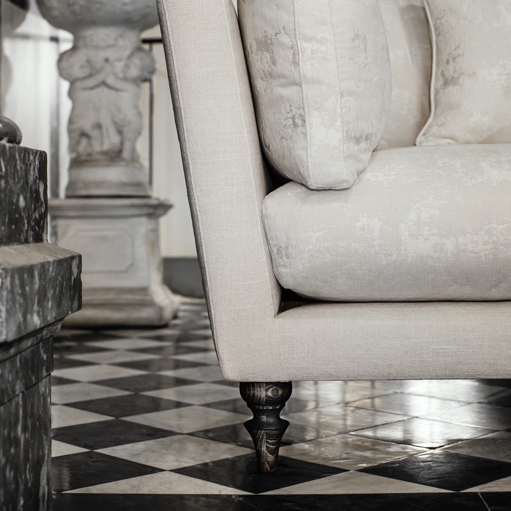 Renard is the perfect mix between bold and elegant. The wraparound back cushions are filled with pure feather to give that extra plump, resting on a slim lined shape and tilted arms, Renard gives you the perfect conditions for pure relaxation. Dressed in smooth swan white chenille fabric with dark walnut turned legs, this sofa is all classic elegance.